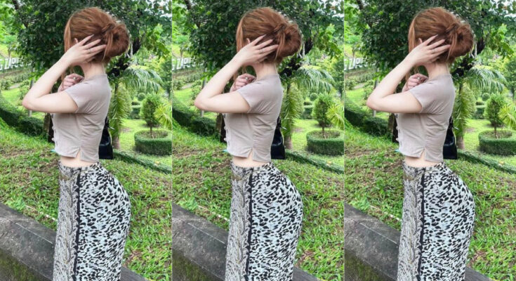 သူမ ရင်လျားကာ ဝတ်ထားသည့် ထမိန်လေးမှာ သူမ၏ မို့မောက်နေသော ရင်သားများနှင့် ကားစွင့်ပြီး ကြီးမားအိစက်နေသော တင်သားများကို ပြီးပြည့်စုံအောင် လုံခြုံမှု မပေးနိုင်ချေ ။ ဖြူပြီးဝင်းနေသော အသားအရည်လေးများဖြင့် သူမ၏ အမို့အမောက် အစွင့်အကားများကို ပေါင်းစပ်လိုက်သော အခါတွင် သူမ၏ ခပ်မြင့်မြင့် အရပ်ကလေးဖြင့် သန်းနုမှာ လှချင်တိုင်း လှလို့ နေ၏ ။